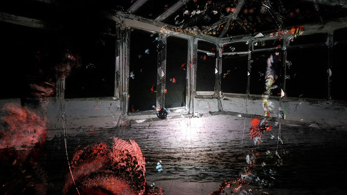 Tim's haunting percussion animates audio-reactive elements that reveal fragments of the architectural structure of an abandoned greenhouse.