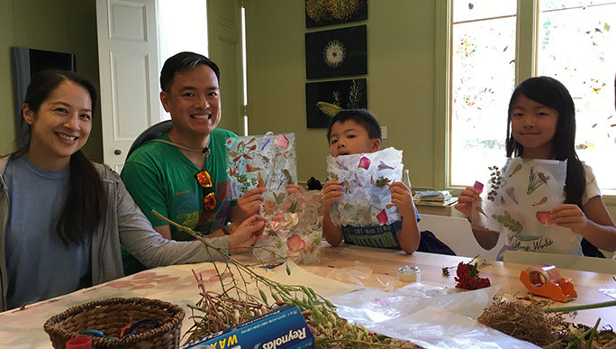 Utilizing foraged organic plant matter from the gardens, we created these translucent window pieces that would be illuminated from behind to reveal nature's wondrous palette of color and textures.2