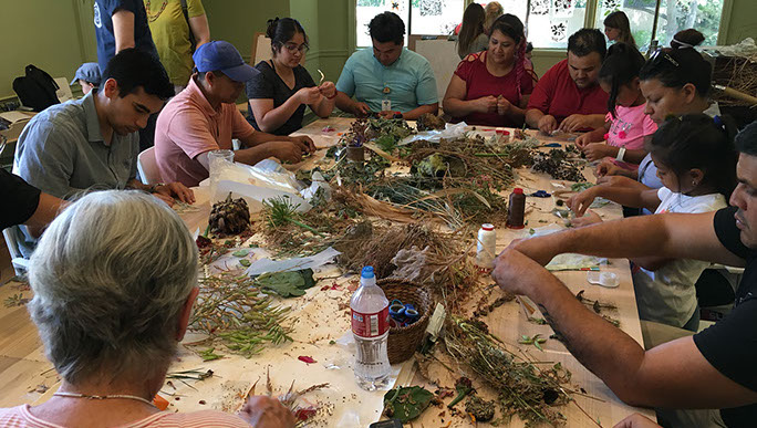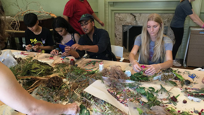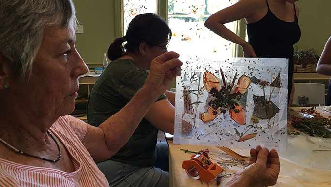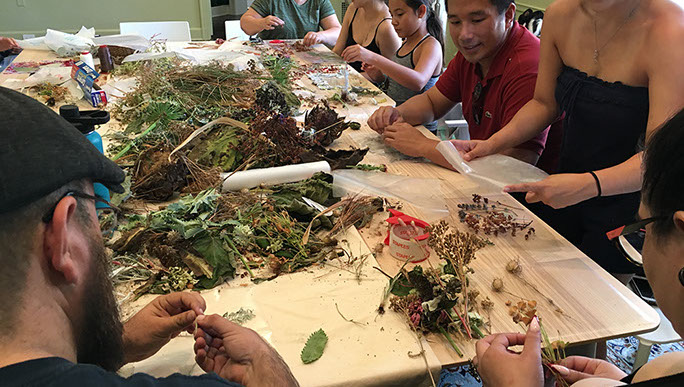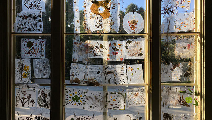 Utilizing foraged organic plant matter from the gardens, we created these translucent window pieces that would be illuminated from behind to reveal nature's wondrous palette of color and textures.17