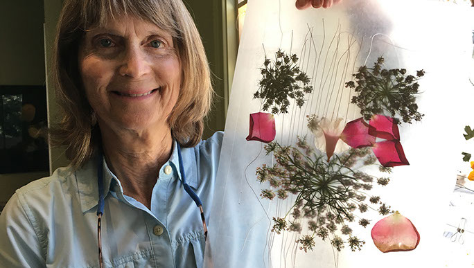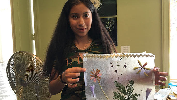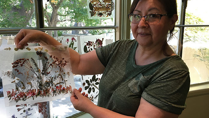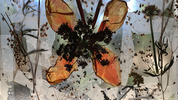 Utilizing foraged organic plant matter from the gardens, we created these translucent window pieces that would be illuminated from behind to reveal nature's wondrous palette of color and textures.6