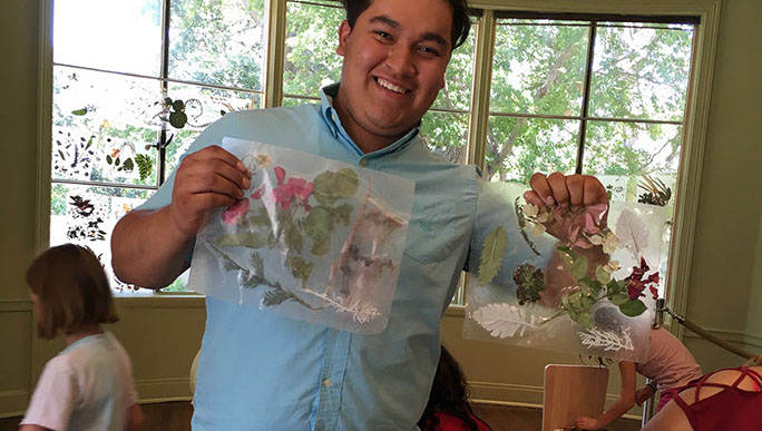 Utilizing foraged organic plant matter from the gardens, we created these translucent window pieces that would be illuminated from behind to reveal nature's wondrous palette of color and textures.14