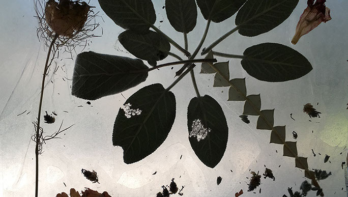 Utilizing foraged organic plant matter from the gardens, we created these translucent window pieces that would be illuminated from behind to reveal nature's wondrous palette of color and textures.15