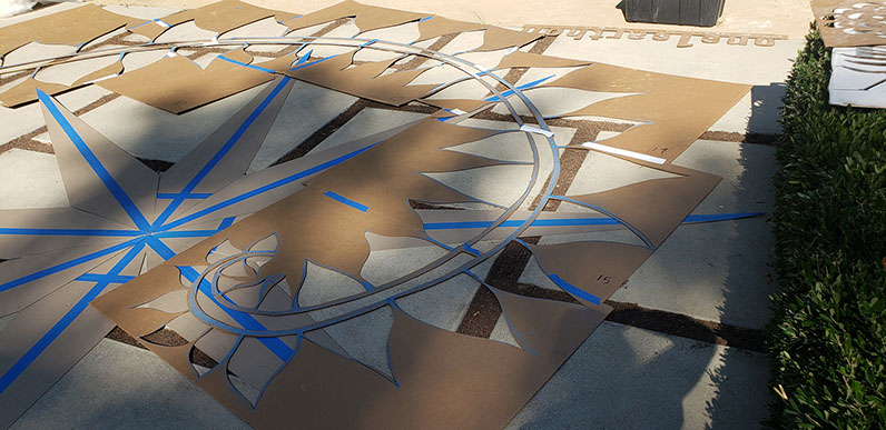 "Carpet of Humanity," white stencil collaborative drawing by Carole Kim, Alicia Gorecki and Alistair Milne