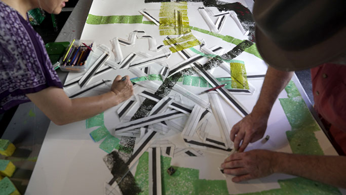 Using Alicia’s recent road trip as our point of inspiration/reference we constructed this drawing as an abstracted memory of the experience.