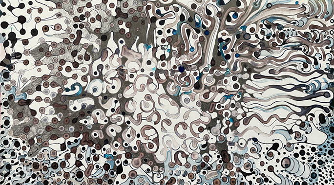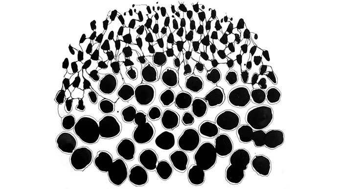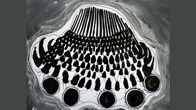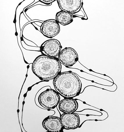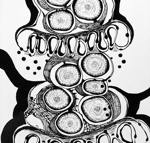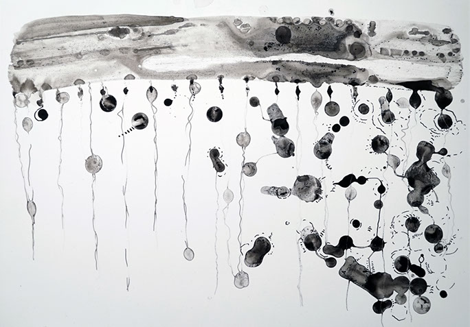 We originally thought “stalactite meets stalagmite” but then ink bubbles insisted that we embrace the floating roundness of things.