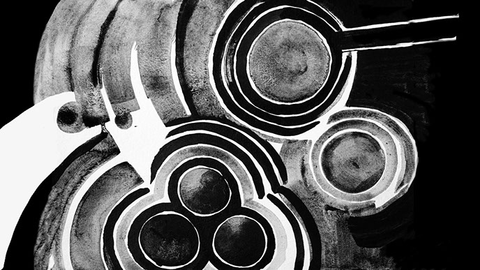 R: artichoke flower brush, soft and prickly, black. Wide wood brush, soft, white. Bird feathers quills. How do white and black meet? Harmony grew out of total chaos. I hope to achieve that in my own life!
